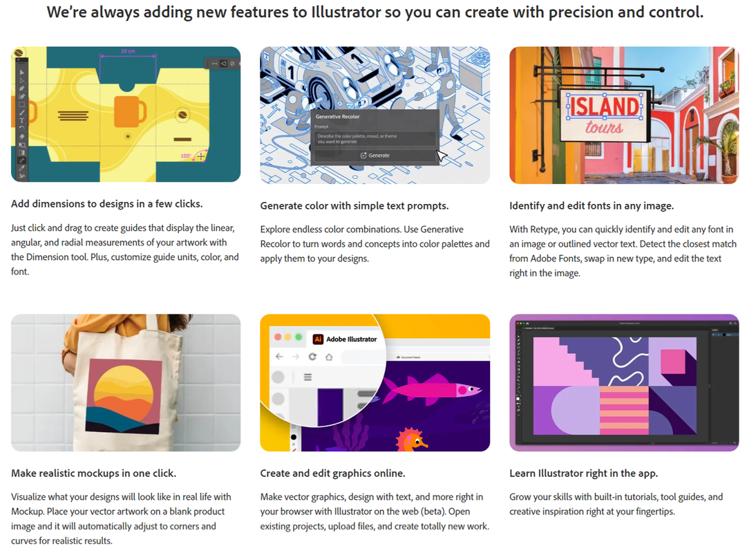 Get all the drawing tools you need to turn simple shapes and colors into sophisticated logos, icons, and graphics. Illustrator artwork is vector-based software, so it can scale down for mobile screens and up to billboard size - and always look crisp and beautiful.