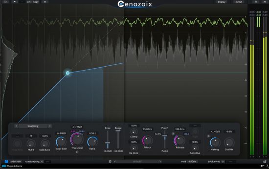 Traditional anti-aliasing methods, which aim to prevent high-frequency distortion, rely on CPU-intensive oversampling. Anti-derivative antialiasing (ADAA) is an audio processing technique developed by Native Instruments, originally used for waveshapers. Instead of depending on oversampling, it leverages advanced mathematics to reduce aliasing without the heavy CPU load. The Cenozoix Compressor is the first compressor plugin to incorporate ADAA.